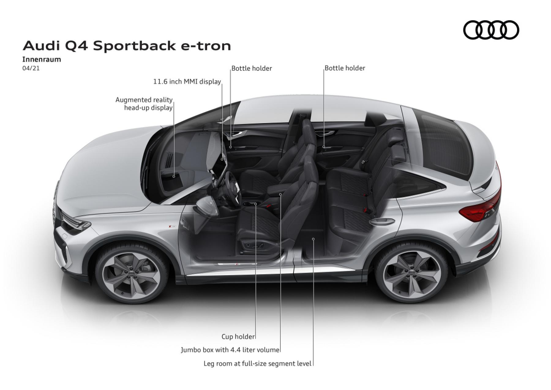 Sportovní podvozek snižuje světlou výšku karoserie o 15 milimetrů. Nové nastavení pružin, tlumičů a řízení zajišťuje pro Audi typicky vyvážené, solidní jízdní vlastnosti a sportovní reakce při změnách směru jízdy. Modely Audi Q4 e-tron reagují na pohyby volantu bezprostředněji, což přispívá k větší agilitě a sportovnosti.