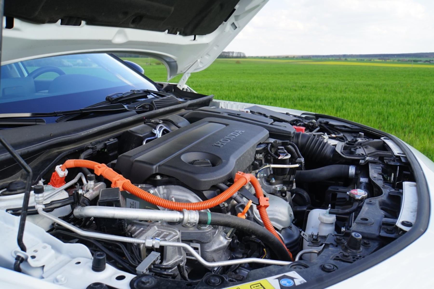 Za pozornost určitě stojí vysoká tepelná účinnost (41 procent) a neobvykle vysoký kompresní poměr 13,9:1. Nepřímé vystřikování Honda doplnila o přímé. Elektromotor produkuje systémový výkon 135 kW (184 koní). Elektřina pak po většinu času přímo pohání přední kola, spalovací motor se zapojuje až ve vyšších rychlostech, do té doby funguje jako generátor. Při snaze o opakované pružné zrychlení z vyšších rychlostí, kdy benzinu pomáhá i elektromotor, můžete postupně zaznamenat snižující se výkon. Jednoduché vysvětlení – baterie o hmotnosti 36,4 kg (s vyšší energetickou hustotou) má kapacitu 1,05 kWh, a když jí energie začne docházet, přestane zkrátka elektromotor tomu spalovacímu pomáhat. Je to ale bez přehánění extrémní situace, kdy byste třeba na německé dálnici opakovaně a několikrát za sebou dávali plný plyn.