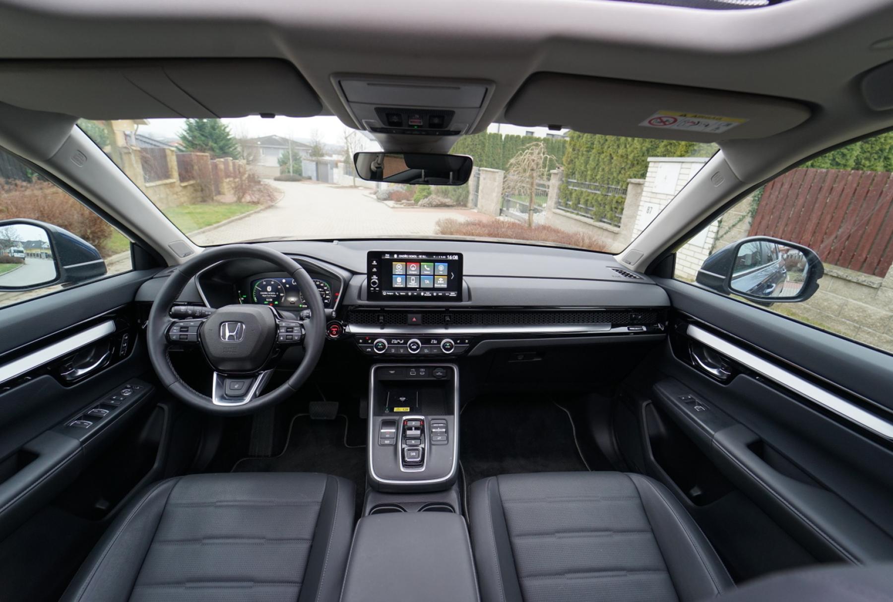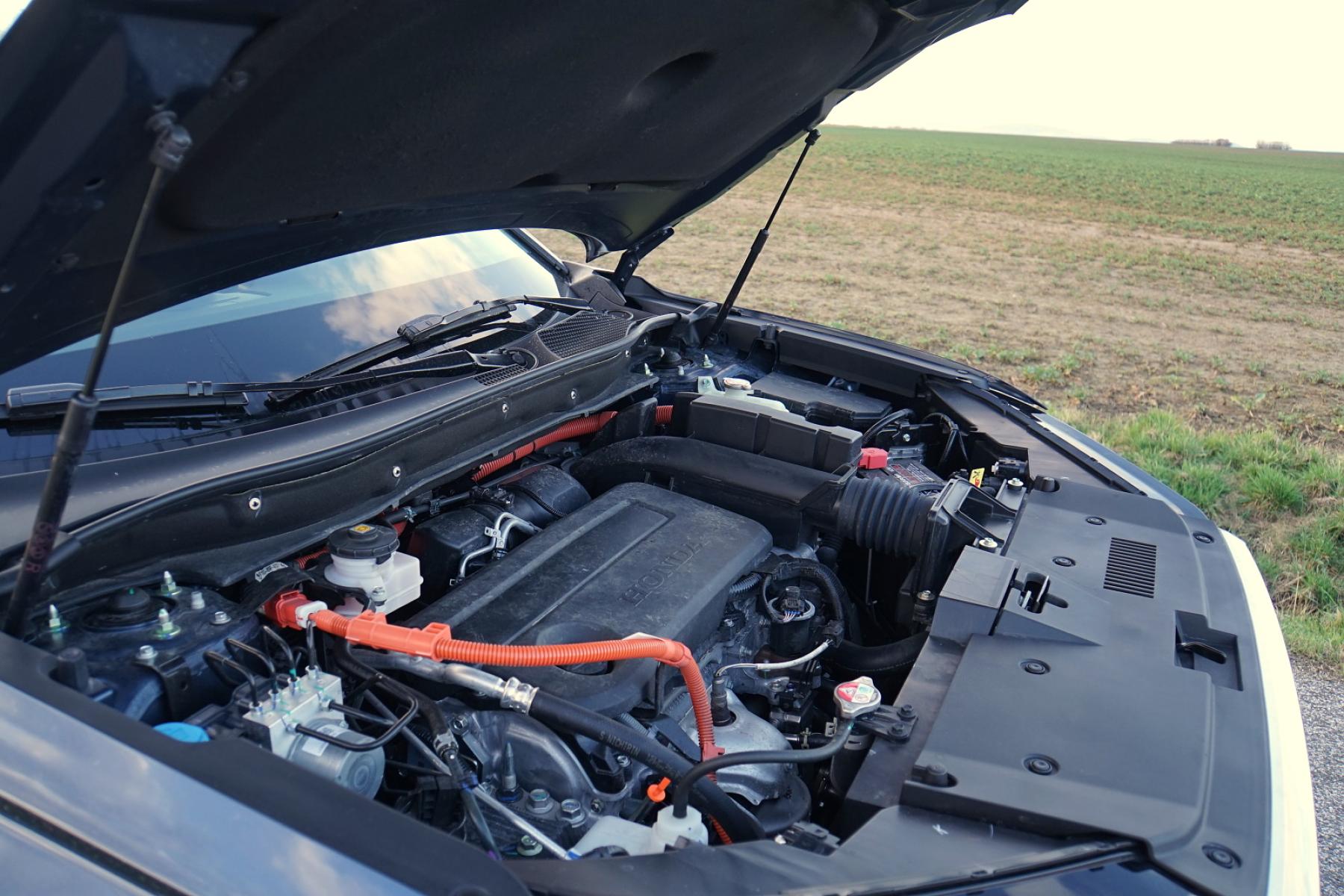 Do testu přijela hybridní verze Hondy CR-V, která je k dostání jak s pohonem předních kol, tak s pohonem všech kol. Ať sáhnete po zkoušeném hybridu nebo dražším plug-in hybridu, vždy pod kapotou naleznete atmosférický čtyřválec pracující v Atkinsonově cyklu (jedná se o nově vyvinutý motor, který si odbyl premiéru v desáté generaci Civicu). K tomu hybrid disponuje dvojicí elektromotorů – jeden funguje jako generátor, druhý se stará o pohyb vozu.