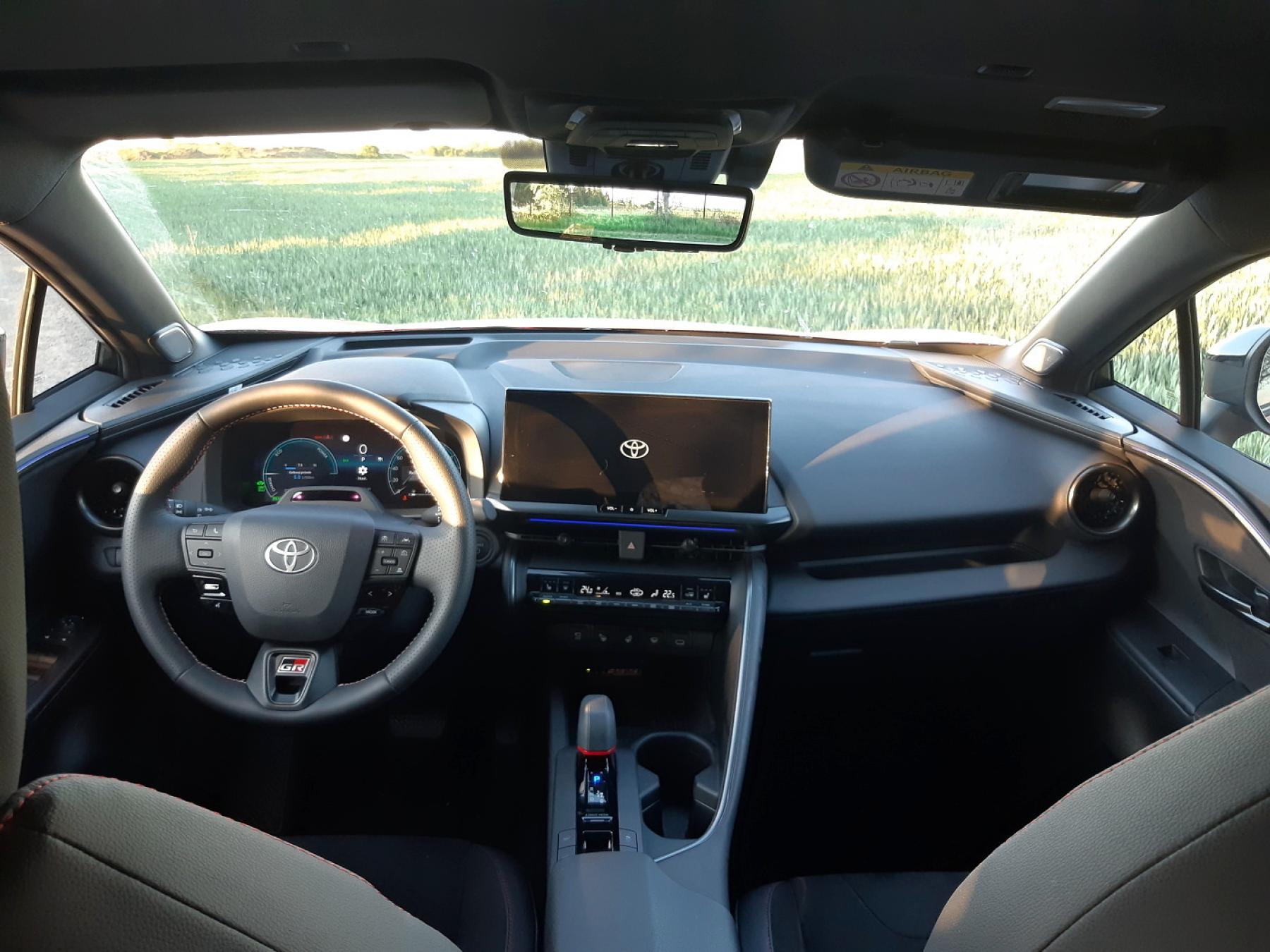 Na pracoviště řidiče si rychle zvyknete. Za volant Toyota umístila digitální přístrojový štít a nezapomněla na přítomnost fyzických ovladačů – tlačítkový panel si zachovala dokonce i ventilace, vše ostatní se přepíná na 12,3palcovém středovém displeji.