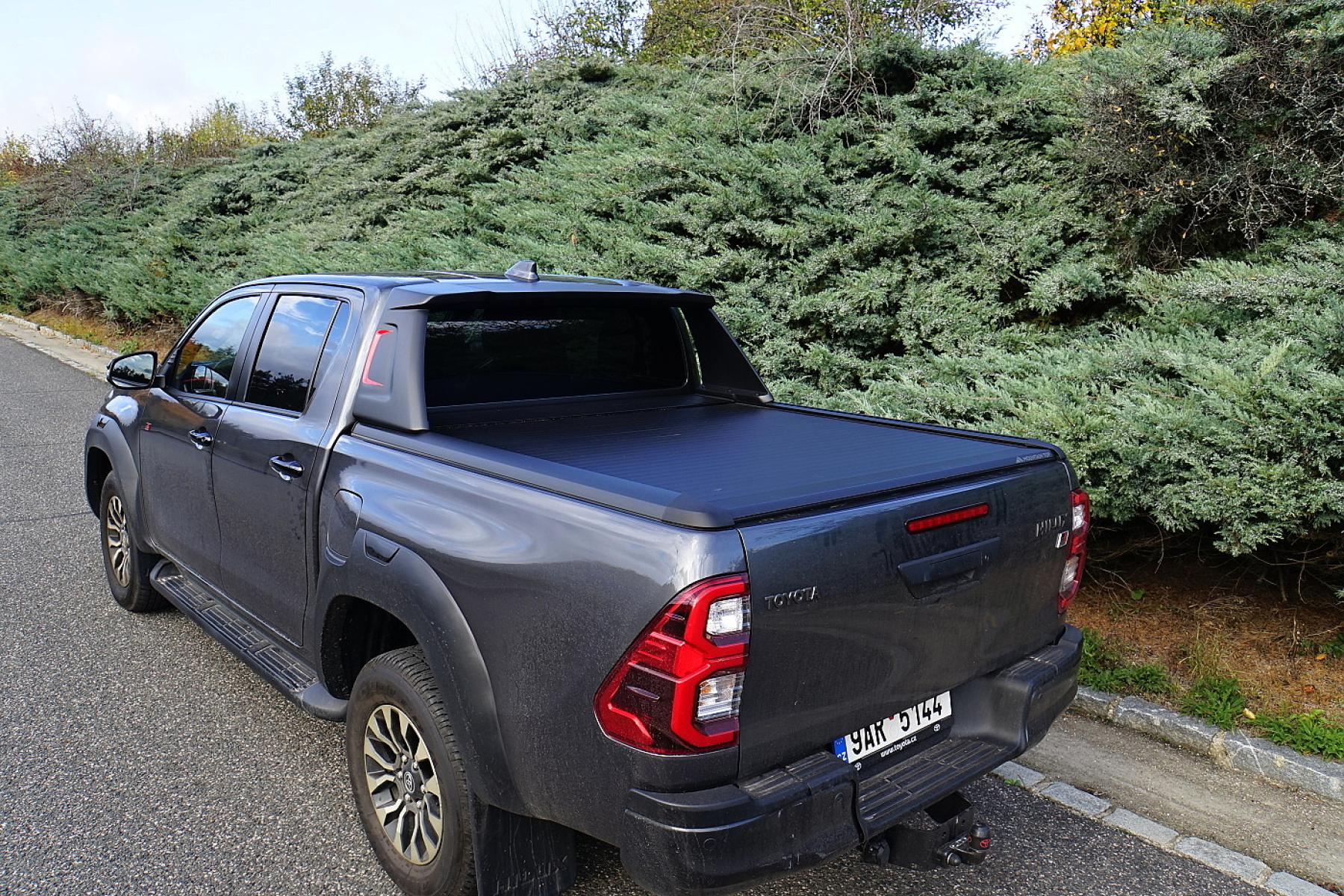 K nejdůležitějším novinkám modernizovaného Hiluxu patří elektricky rolovaný kryt korby, 12voltová zásuvka a dvě diodové svítilny na vnitřních bocích korby. Praktičnost vozu snižuje těžké víko korby, které je nutné uzamykat klíčkem (centrální zamykání je na něj krátké).