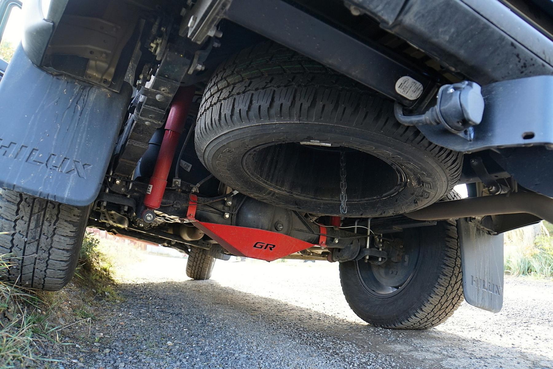 Podvozek tvoří žebřinový podvozkový rám s nezávislým zavěšením kol vpředu a odpružením zadní tuhé nápravy listovými pery. Zatímco předchůdce disponoval naladěním na zatížené auto, při vývoji aktuální generace se technici zaměřili na skutečnost, že pick-upy často jezdí bez těžkého nákladu. S novými tlumiči a jejich přepracovaným uložením se Hilux sice nezbavil charakteristického projevu rámových pick-upů (jemné poskakování a vibrace), ale při běžné jízdě je rozhodně civilizovanější a svým chováním se daleko více blíží jízdnímu projevu osobního automobilu. Nejvíce nás překvapil na dálnici, po které se pohybuje daleko odhodlaněji a bezpečněji, než dříve.
