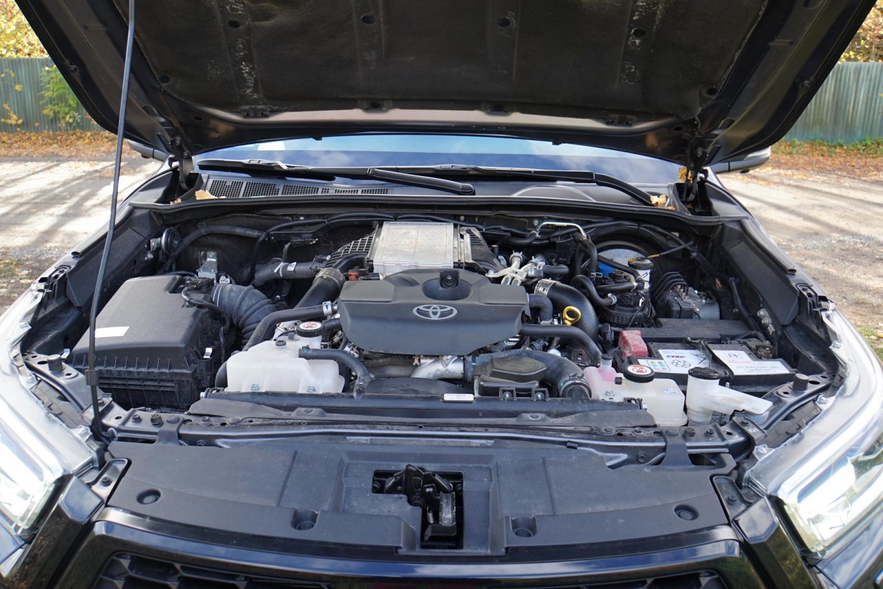 Nejvýznamnější novinkou omlazeného Hiluxu je nový vznětový čtyřválec 2,8 D-4D, který doplnil původní diesel 2,4 D-4D. Agregát disponuje výkonem 150 kW (204 koní) a maximem točivého momentu 500 N.m. Pick-up s hmotností 2,2 tuny akceleruje z 0 na 100 km/h za 10,2 sekundy a dosáhne maximální rychlosti 195 km/h. Hilux je dostupný jak s šestirychlostní manuální převodovkou, tak s šestistupňovým automatem AC60F, který je jedinou volbou pro zkoušenou výbavu GR Sport.