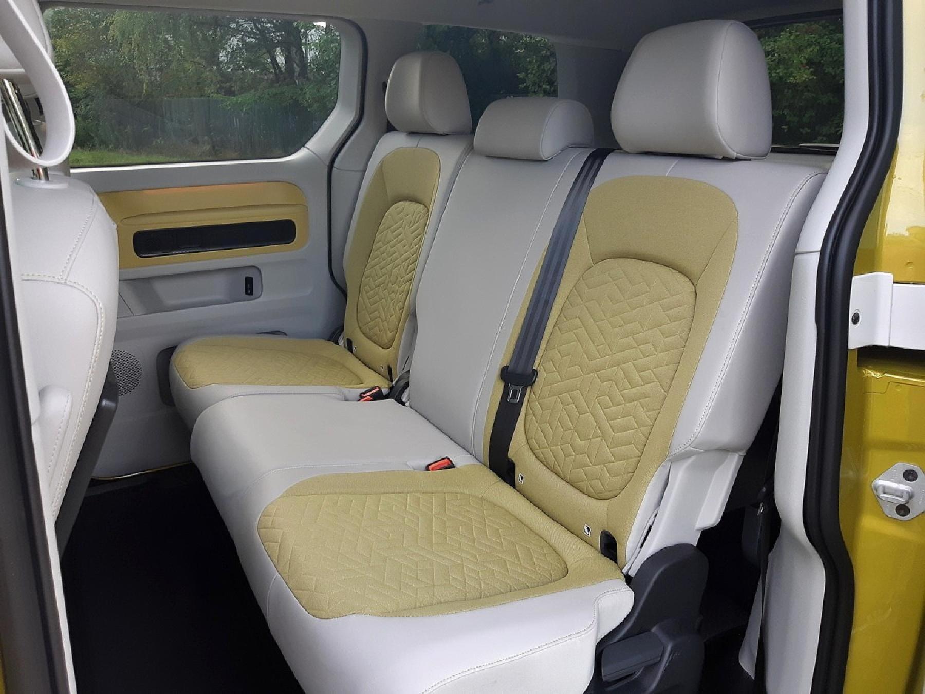 Elektrický minivan působí rozkošně, až nevině, přitom na délku měří lehce přes 4,712 metru, široký a vysoký je bez pár milimetrů dva metry. Prostě krabice, která své rozměry dokonale maskuje. Rozvor náprav dosahuje téměř tří metrů.
