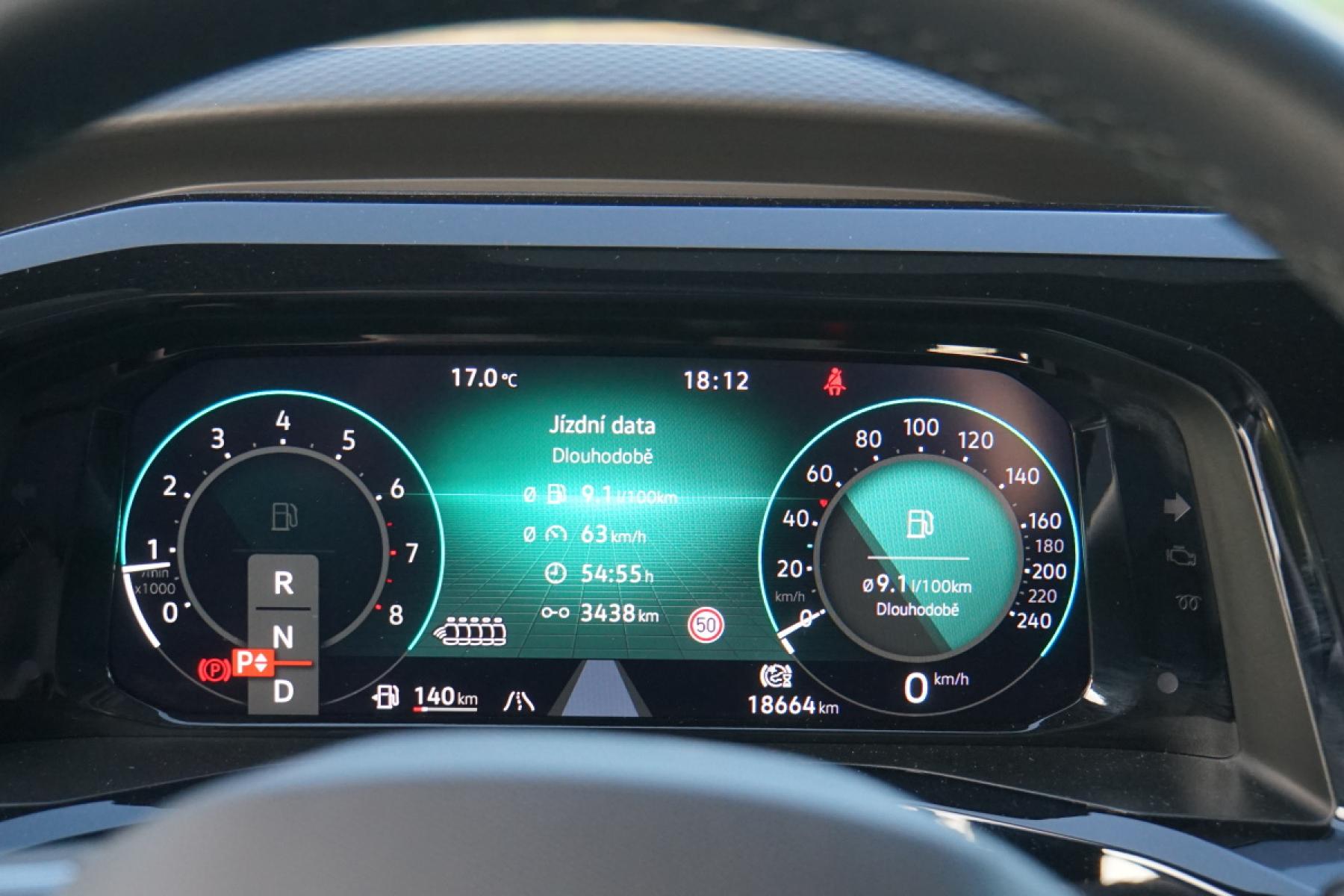 Většina věcí v kabině se ovládá dotykově. Pod dotykovým displejem Volkswagen umístil dotykovou lištu, která není za tmy osvětlená a její použití je zásadně ztíženo. Na volantu naštěstí zůstala tlačítka, které u většiny nových modelů automobilka nahrazuje dotykovou ploškou.