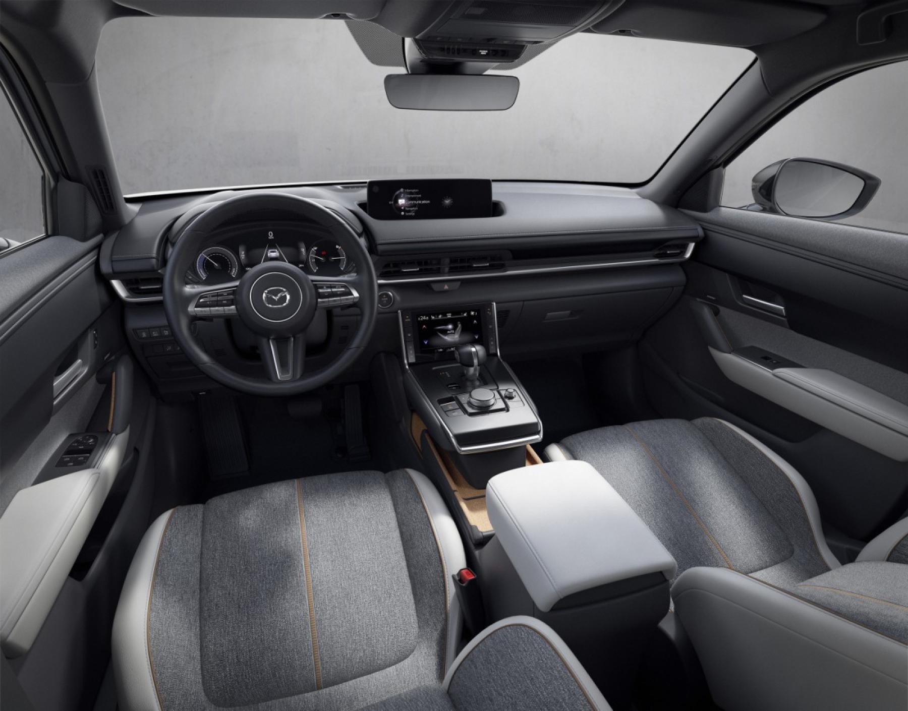 Model MX-30 je ztělesněním přístupu Mazdy k uhlíkové neutralitě, který je založen na více řešeních. Při navrhování byly použity přírodní materiály, jako je korek a tkaniny z recyklovaného materiálu.